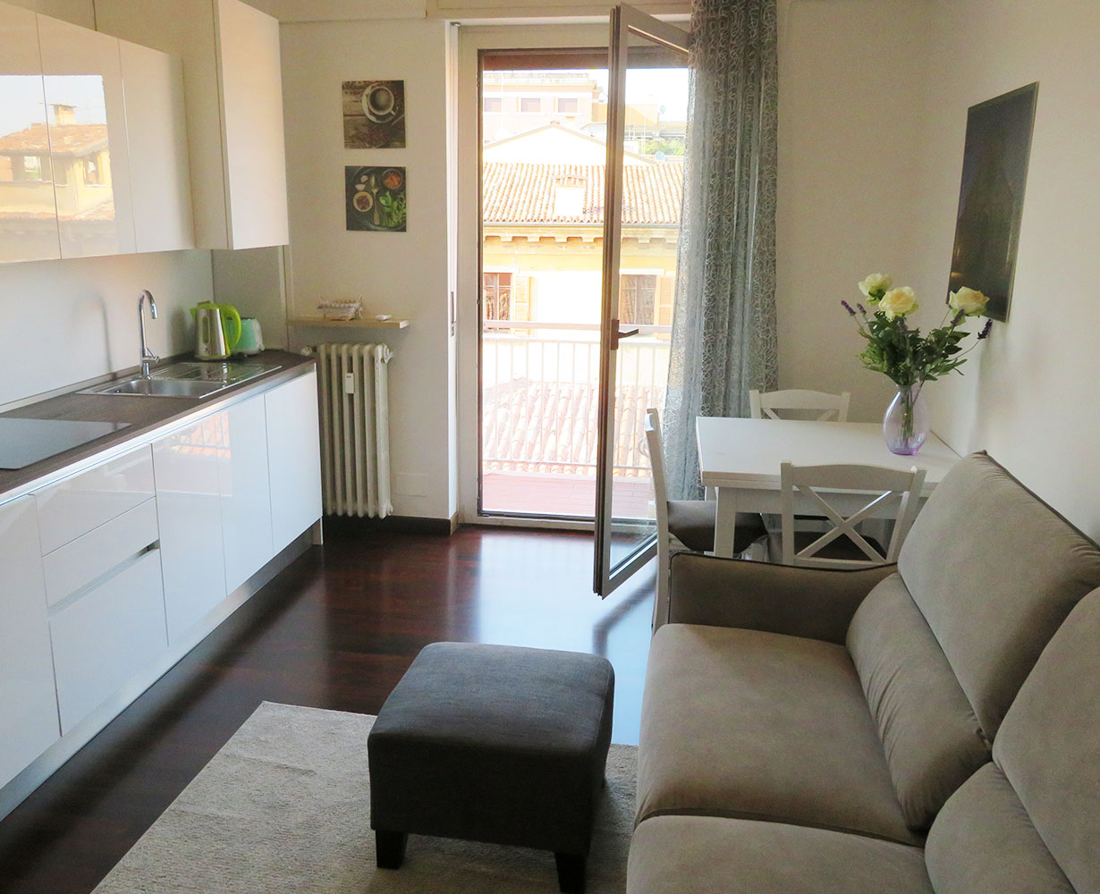 Beautiful, large, modern and functional flat just a stone’s throw from Piazza Bra. Equipped with every comfort, with a large bathroom with window, fully equipped kitchen and large bedroom. Air conditioning throughout.