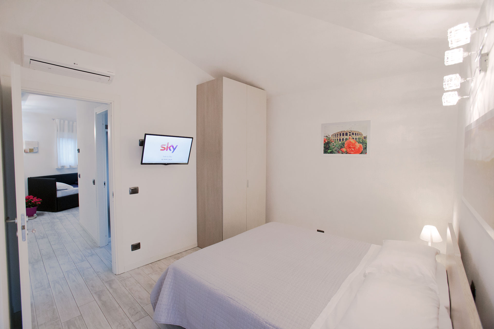 Ottima posizione per raggiungere la fiera di Verona (10 minuti di l’autobus), parcheggio disponibile accanto alla struttura, appartamento pulito e curato, disposto di tutto il necessario anche per una sola notte (asciugamani, lenzuola, kit di cortesia da bagno), ottima assistenza per l’arrivo anche se si arriva tardi la sera il servizio di check in viene effettuato a distanza senza problemi. La struttura è vicino alla fermata dell’autobus e lo si può raggiungere senza problemi senza prendere la macchina.